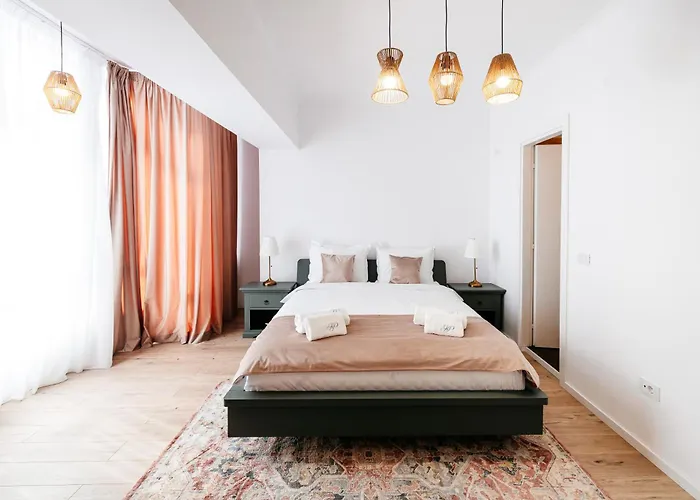 Indkøbscenteret Promenada ligger 2 km fra ferielejlighed. Pizzeria Bocca Lupo tilbyder Italiaanse gerechten specialiteter. Det tager ikke lang tid at komme til Arcul de Triumf i bil.